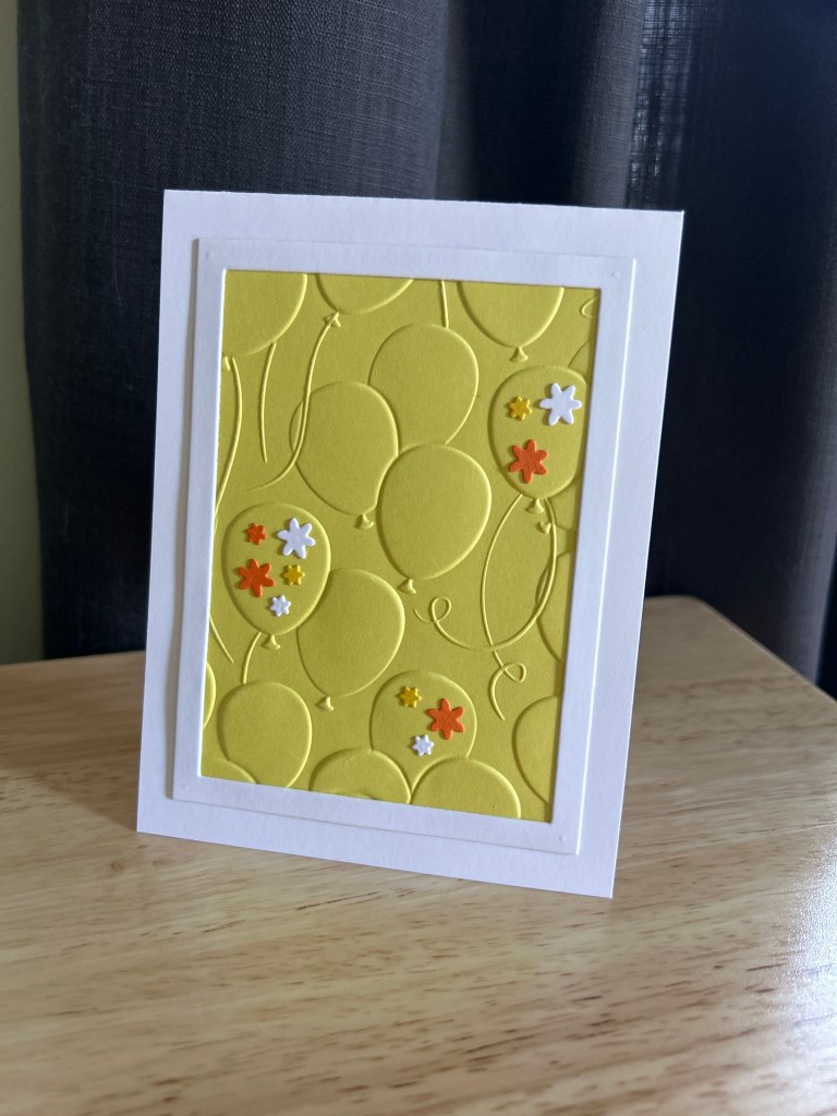 I had a balloon embossing folder sitting nearby (a $3 Spellbinders warehouse sale find!) on C+9th Starfruit cardstock.