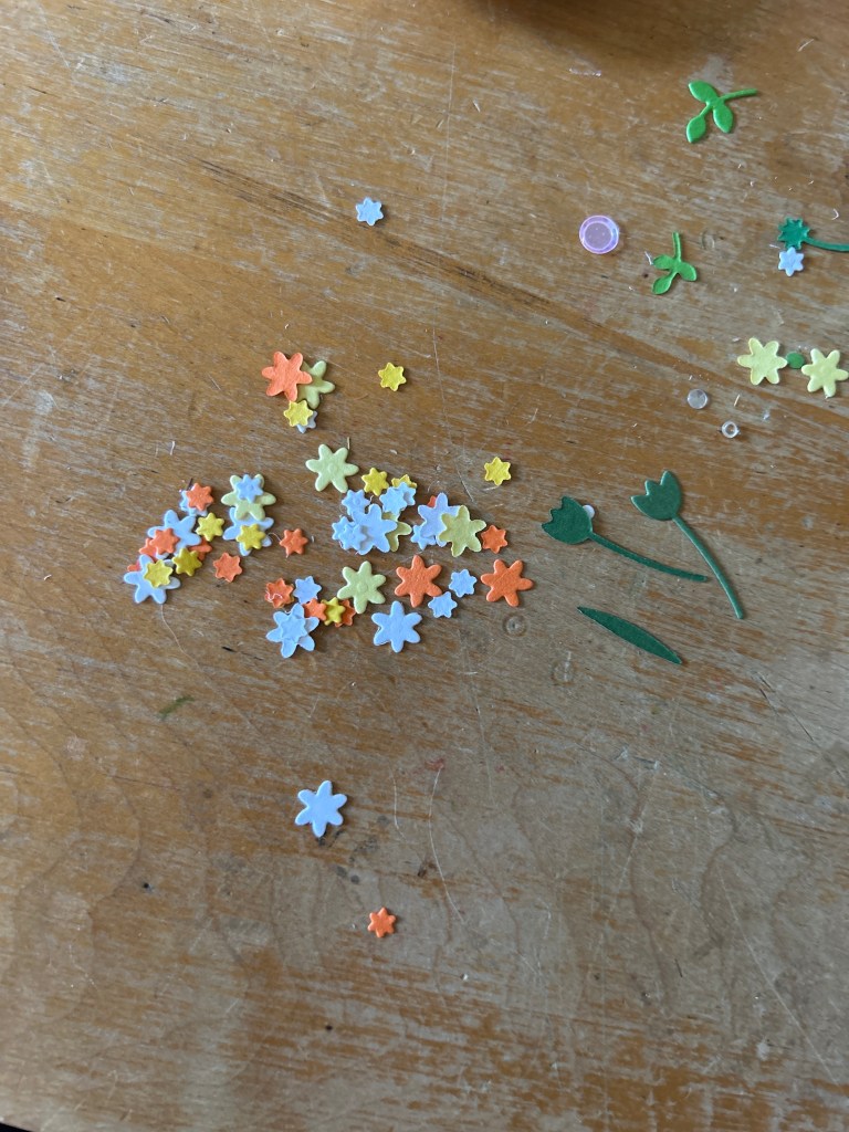 On my desk this week was a scatter of tiny die-cut flowers I had already made using two older Impression Obsession sets Tiny Flowers and Tiny Six Petal Flowers.