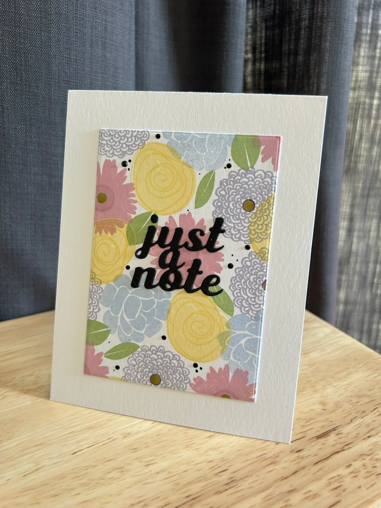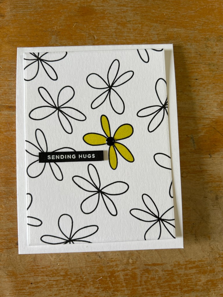 Keeping the rest of the panel mostly black and white helped that single flower become the focal point. A small sentiment strip finished the design without competing with the pattern.