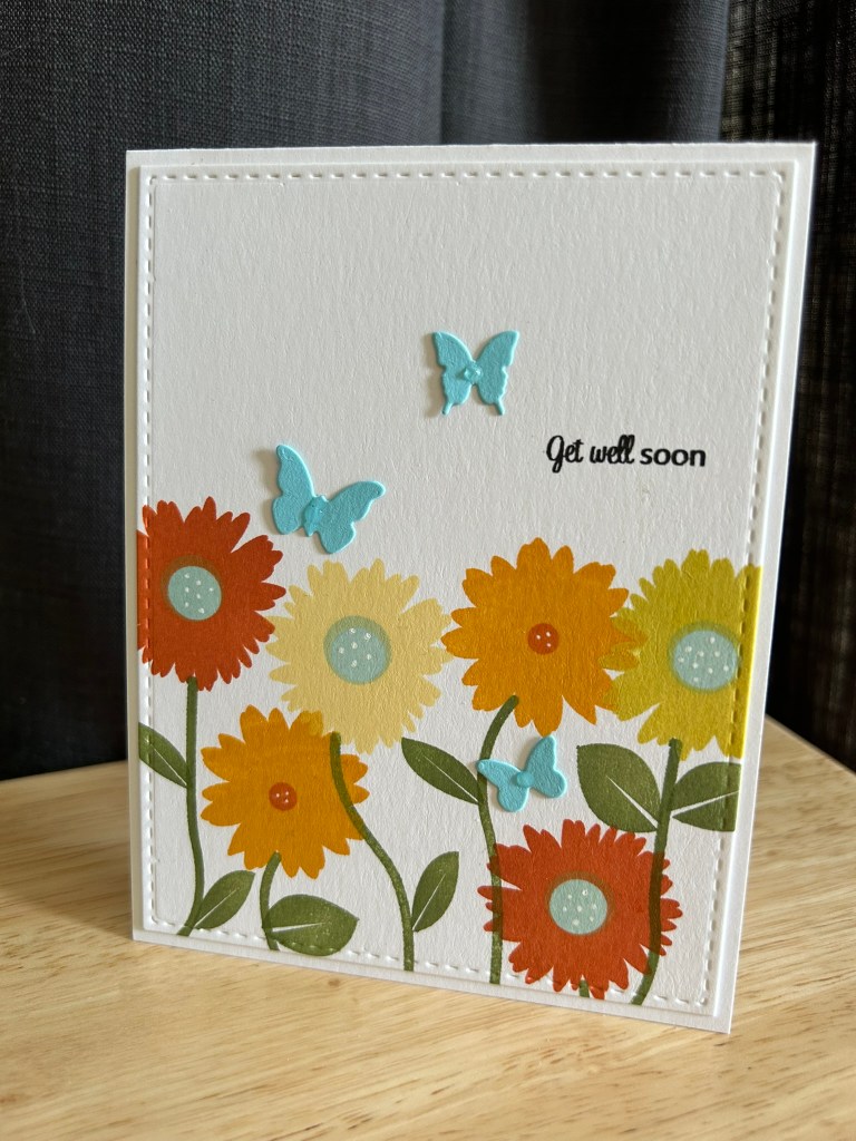 This week I pulled out Flower Garden, an early Papertrey Ink stamp set. In my Evernote inventory, I had noted that I hadn’t used it very much, which is usually a sign that a set might be headed toward the donation pile.