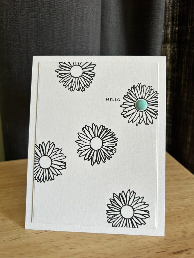 Keeping the graphic vibe going, I stamped a single flower to create a background. The design relies on white space and a limited palette rather than a busy pattern.