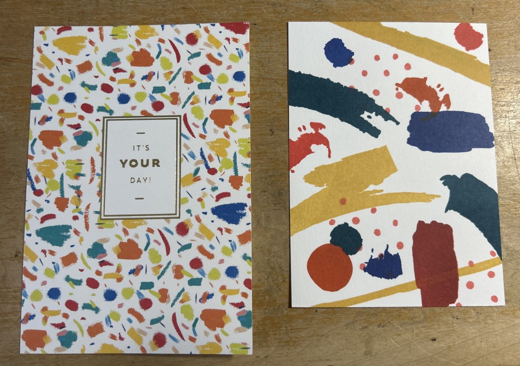 Rather than copying the card directly, I treated it as a starting point and asked: What do I love most about this? The answer was clear — the bold, painterly shapes and the modern color combination.